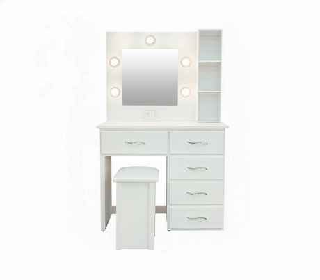 Peinadora de 5 gav. C/espejo y banqueta blanco derecha Isabel