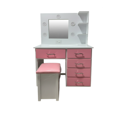 Peinadora de 5 gav. C/espejo y banqueta rosada derecha Isabel