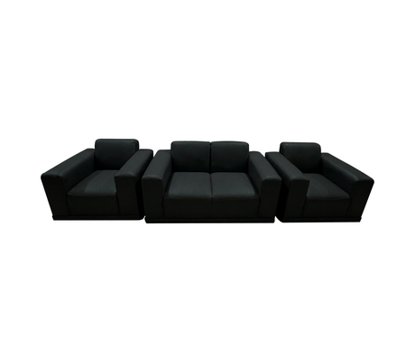 Juego de recibo 1, 1 y 2 puestos madera c/cojín bipiel negro Isabel