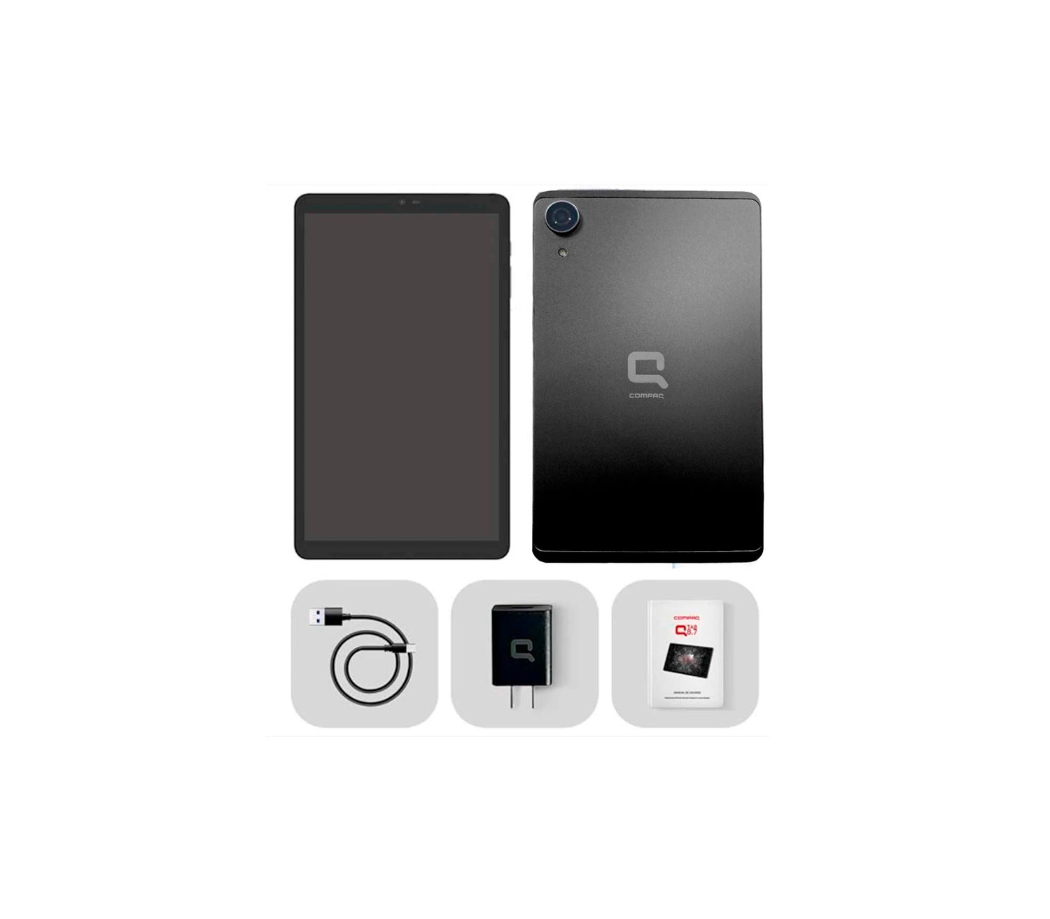 La Tablet Compaq QTab 8.68” – 4 GB / 64 GB (modelos QT9AVHE464QG y QT9AVHE464QS) es una tablet versátil, potente y accesible diseñada para acompañarte en todas tus actividades diarias.