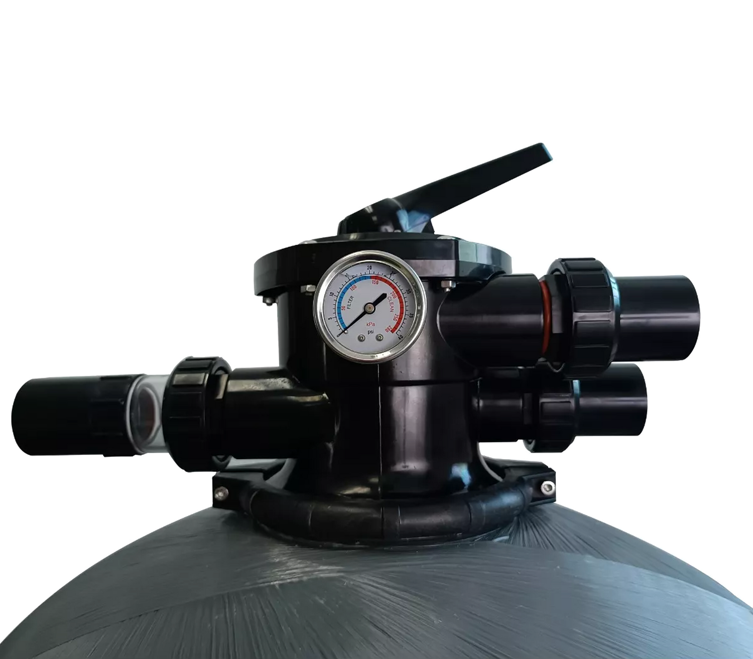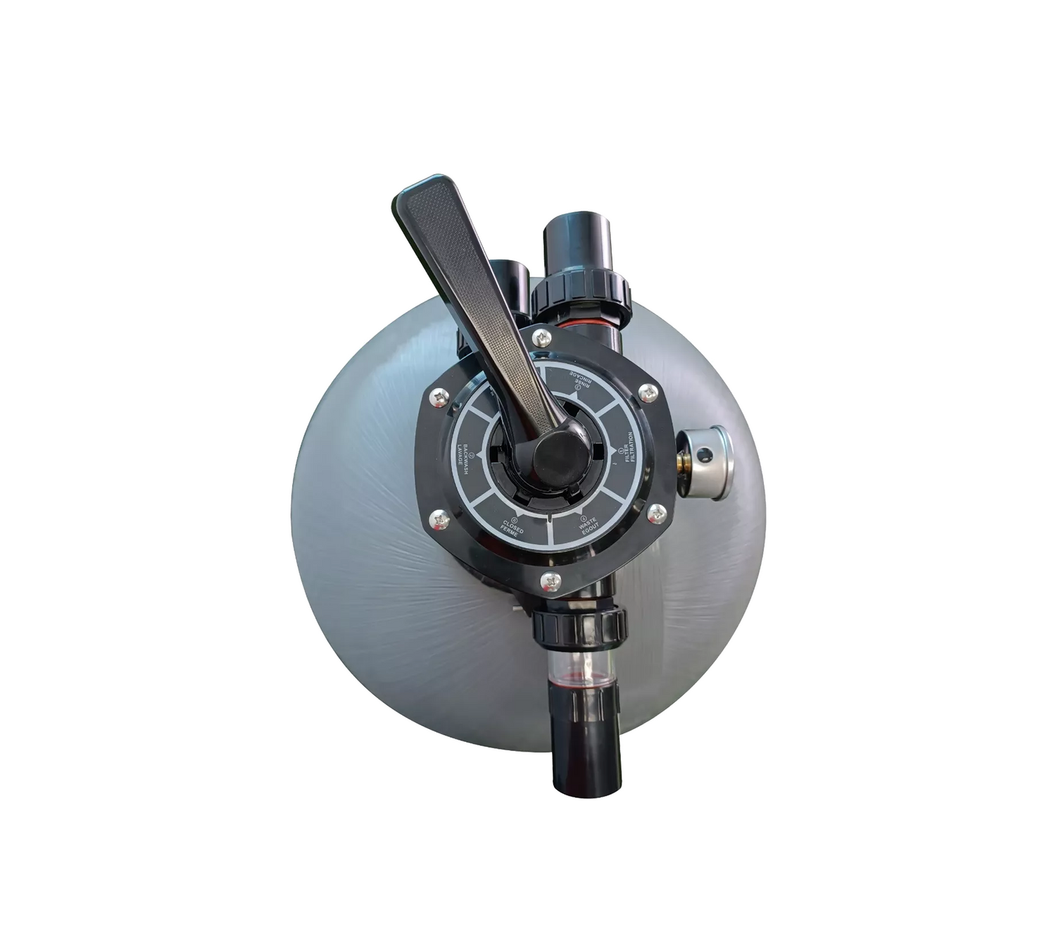 - Incluye: Válvula Superior con Conexiones de 1,5” de 6 Funciones (Filtrado, Retro lavado, Desecho, Recirculación, Enjuagado, Cerrado)