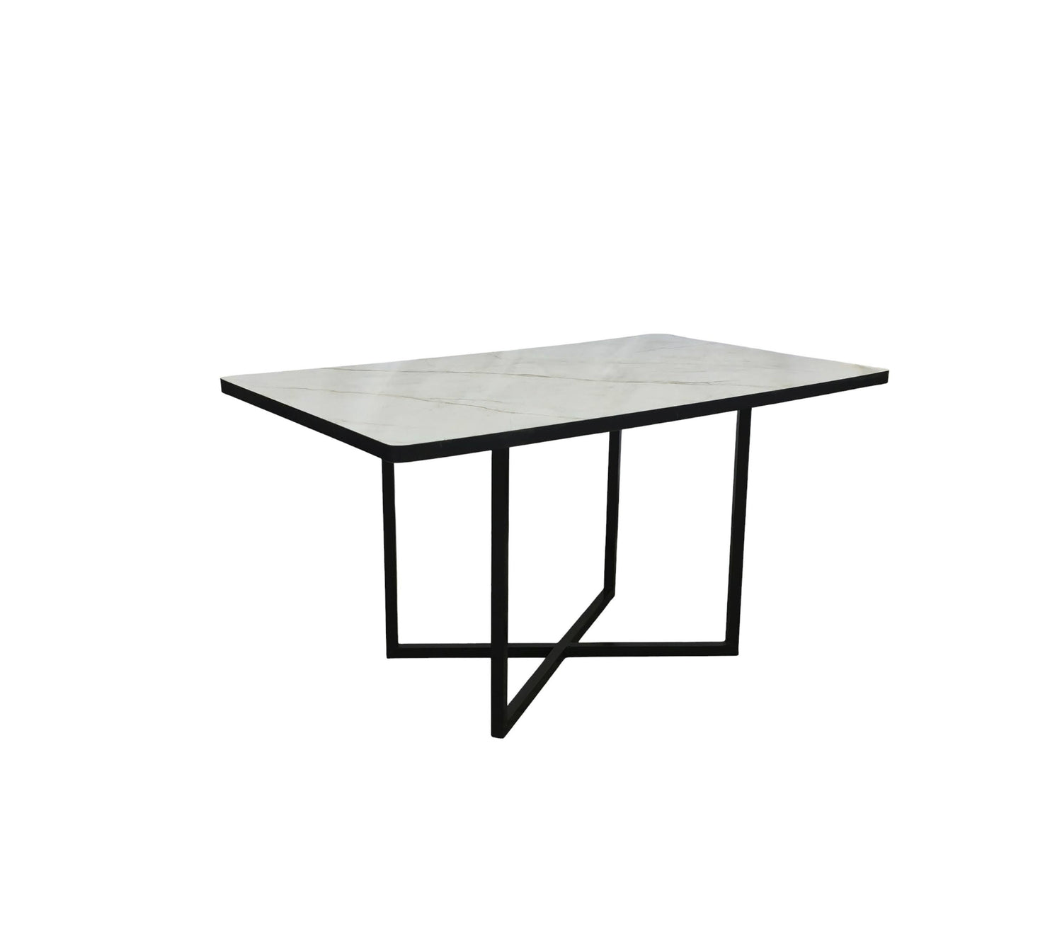 Mesa de centro rectangular en base de metal con tope en PVC marmolizado claro Powerfik